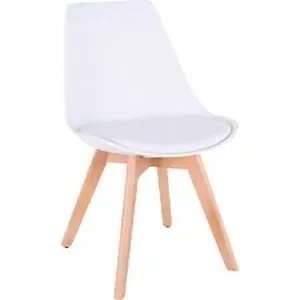 This guest chair offers a different look with this modern design and inviting, white curved plastic shell. The seat features an attached cushioned pad upholstered in fabric. Sturdy base cradles the shell and supports your visitors with four Natural Wood legs. Guest chair meets or exceeds ANSI/BIFMA standards.