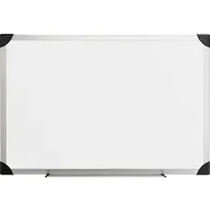 Collect your thoughts and ideas on this convenient easy to write on, easy to erase 72" x 48" whiteboard that features a laminated styrene surface and sturdy aluminum frame that withstands years of use. Its easy-to-clean surface resists scratching and ghosting. Board is perfect for organizing your schedule, planning your projects, leaving messages and effectively leading a meeting or discussion. Whiteboard can be easily mounted horizontally with its four-corner mounting system. Low odor, nontoxic whiteboard markers (sold separately) come in a wide variety of colors and feature quick drying, smear proof ink. Writing or drawing easily erases with a dry cloth, tissue or eraser (sold separately). Board includes a handy marker and eraser holder that can only be used in the horizontal orientation.