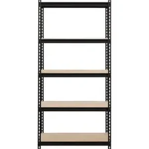 Iron Horse Riveted Steel Shelving offers a boltless design for simple assembly. It holds up to 2,300 lb. of evenly distributed weight on its particleboard shelving. The five shelves are supported by a black steel frame with a powder-coat finish for durability. Shelving assembles vertically or horizontally.