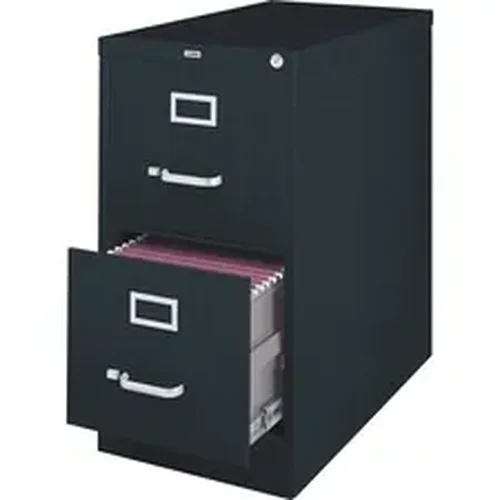 FILE,VERT 26.5" LGL,2DR, BK Lorell Commercial-grade 2-Drawer Vertical File Commercial-grade, vertical file features two high-sided drawers that accommodate legal-size, hanging file folders without additional accessories. Three-piece, slide suspension allows maximum drawer extension. Steel ball-bearings provide smooth, quiet drawer performance. Vertical file also features a core removable lock, adjustable wire followers and heavy-duty steel construction. Vertical file meets or exceeds ANSI/BIFMA industry standards. Color:BLACK 56101702