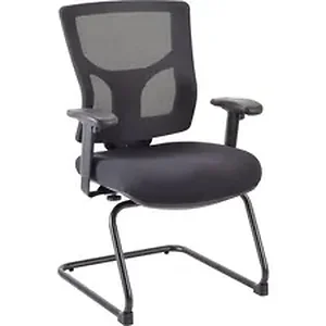 Conjure Guest Chair offers easy back-height adjustment and breathable mesh back for cradling comfort. Ergonomically designed mid-back is perfect for the natural curvature of a person's back. Fabric-upholstered seat is polyurethane-injection foam to ensure your guests feel welcomed. Included arms with polyurethane pads adjust in height and width to suit your needs. Sled base is powder-coated for durability.