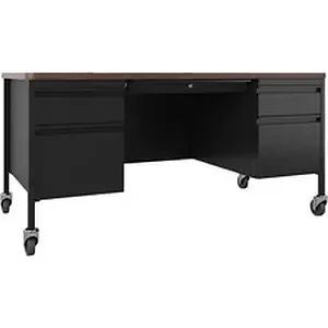 Lorell LLR 66945 Fortress Series Walnut Top Teacher's Desk - 60 x 30 x 29.5 - Box Drawer(s), File Drawer(s) - Double Ped