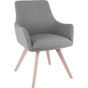 Mid-century modern-inspired guest chair with low-profile arms is upholstered with stylish gray flannel fabric for a professional look. Seat and back are cushioned for comfort. Stable base is made with four Beech wood legs with adjustable glides. Guest chair meets or exceeds ANSI/BIFMA standards.