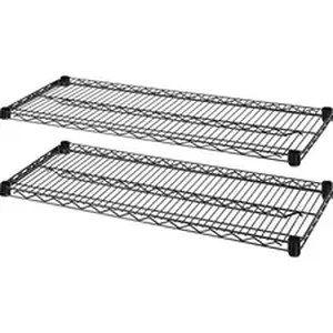 Two extra shelves are designed to expand Lorell Industrial Wire Shelving Starter Kits (sold separately) and organize your storage areas. Easy collar-and-sleeve assembly requires no tools. Each 36" wide x 24" deep shelf adjusts in 1" increments. Shelving is made of steel with a powder-coat finish, 10-gauge shelf surface, 3-gauge frame, and 6-gauge wave pattern.