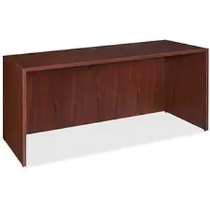 Credenza shell is part of Lorell Essentials Series Laminate Furniture with high-quality laminate construction and metal-to-metal, cam-lock connections. Mahogany laminate top is 1" thick for durability. Use the two grommet holes in the top for easy cord routing. Design also includes 96mm metal drawer pulls with a silver brush finish, 3mm PVC edges and adjustable feet.