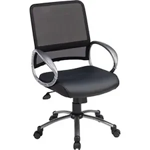 CHAIR,MESH,TASK,W/ARM/LEATH Lorell Mid-back Mesh Bonded Leather Task Chairs Mesh task chair offers a mesh back and bonded leather seat. Functions include pneumatic seat-height adjustment, 360-degree swivel, tilt, and tilt tension. Mid-back chair also features a five-star base with hooded double-wheel casters. Color:BLACK