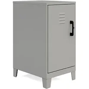 The versatile design of this personal locker makes it suitable for office and home use. Stylish, modern look will fit right in with your offices, classrooms, playrooms, basements and garages. The SOHO Locker adds a cool, industrial touch to your space. Sturdy and durable welded steel construction provides long-lasting strength. Recycled content makes it an eco-friendly choice. Nonporous surface is easy to clean and disinfect. All you need is a damp cloth. Hinged door and a locking mechanism keep your belongings safe. Vented locking door allows airflow while protecting your privacy. Two built-in shelves are perfect for stashing schoolwork, organizing work supplies and putting away sporting equipment, toys and games. Each shelf can support up to 40 lb. to meet all your different needs. Built-in risers keep storage locker off your potentially damp floor. Locker ships fully assembled so you can get organized right away.