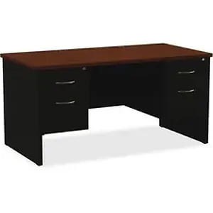 This modular desk series features commercial-quality performance and components. The durable steel chassis supports a 1-1/8" thick laminated top with integrated grommets for wire management. Laminate is stain-resistant and scratch-resistant for durability. To create a U-workstation, simply combine a desk with a bridge and credenza. Desk includes one box drawer for supplies and one file drawer for documents. File drawers with premium arch-pull handles accept hanging file folders for paper management. Steel ball-bearing suspension makes drawers easy to operate quietly. Built-in cord management provides easy access to power and data while minimizing clutter. The rich walnut laminate and black paint create an upscale look and feel for any application. Superior steel construction withstands heavy activity and relocation.