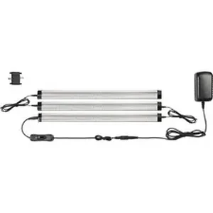 Task lighting starter kit features three 20" LED light bars, a power supply, daisy chain and clip connectors to provide a simple way to add lighting to any area. LED light bars with 1,350 lumens provide excellent lighting for up to three work areas. Clip connectors allow you to spread the lights out or create a 60" light bar. Included mounting hardware allows convenient installation in areas without a sufficient lighting source.