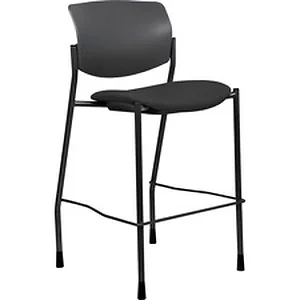 Contemporary stool with a fixed footrest features a heavy-duty tubular steel frame for reliable use with worksurfaces up to 36" high. Frame is powder-coated in black for durability. Black Crepe-upholstered seat and black plastic back provide superior comfort and support. Stool also includes a four-leg base, wall-saver design and nonmarring floor glides. Weight capacity is 300 lb. Stool exceeds ANSI/BIFMA standards and is Green-Guard Certified.