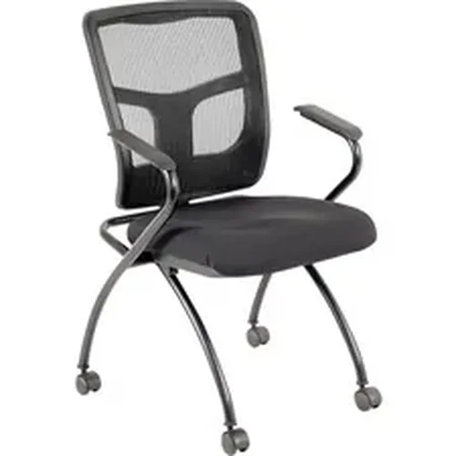 CHAIR,TRAIN,MESH,2/CT Lorell Mesh Back Fabric Seat Nesting Chairs Versatile, nesting chairs work great in your training or reception area. Mesh back, fabric seat and arm rests offer comfortable seating. Four legs include swivel casters for easy chair movement. Metal frame features a powder-coat finish for durability. Folding seat allows chairs to nest for space-saving storage. Color:BLACK 56112103