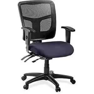 Marketing Information:Managerial mid-back chair features a mesh back for conforming comfort. Ergonomic mid-back matches the natural curvature of a person's back. Arms adjust in height and width. Mid-back chair also offers a five-star nylon base, pneumatic seat-height adjustment (17" to 20-9/10" high from the floor), 360-degree swivel, back-height adjustment, tilt and asynchronous three-lever control. Frame is available in black only. Chair meets the CA117 fire-retardant standard and offers an abrasion rating of 60,000 double rubs (ASTM-D-4175).