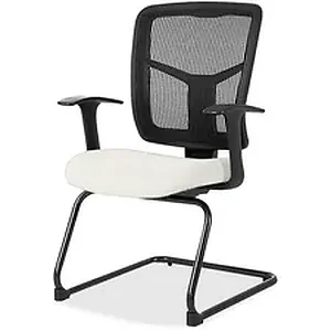 Guest chair features a mesh back, vinyl-upholstered seat and cantilever-style base. Ergonomically designed back cradles the natural curvature of a person's back. Arms adjust in width. Weight capacity is 275 lb. Chair meets/exceeds ANSI/BIFMA standards.