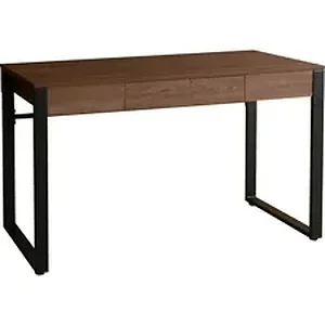 Outfit your office with this modern desk. Part of the Lorell SOHO Collection, it is the perfect size for your small office or home office. This desk includes a Walnut laminate top with PVC edgebanding and one center drawer. Sturdy steel sled base is powder-coated for durability and includes leveling feet guides for stability. Desk meets BIFMA standards.