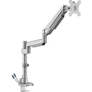 Single-monitor arm with a pole offers versatile positioning and useful features. Adjustable swivel and tilt enhance viewing flexibility. Arm swivels 135 degrees from side to side while the monitor mounting plate swivels 90 degrees. Face of the mounting plate also rotates 90 degrees and is 75mm x 75mm and 100mm x 100mm VESA-compatible. You can also tilt your monitor from negative 90 degrees to positive 90 degrees for multiple monitor viewing angles. Monitor arm is height-adjustable to easily improve eye level and posture for optimal comfort. Built-in spring gauge can be adjusted to suit various monitor weights. Two 3.0 USB ports on the pole are convenient for data transfer and charging. Rear tool holder allows easy access for any future adjustment. Detachable VESA plate makes monitor installation quick and easy. The option of top/side or grommet mounting makes installation convenient and quick. Built-in cable management and clip on pole help keep your cords organized.