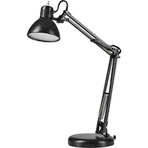 Easily extend and move the three-point arm and adjustable shade on this architect-style lamp to brighten specific locations on your desk. Round, 6" base takes up minimal space on your desk for convenient use on smaller worksurfaces. 4.5-watt, LED bulb produces a soft light to prevent brightening more space than needed. Sturdy wire handle is conveniently located to provide effortless maneuverability and safely direct light where you need it most.