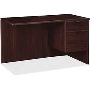 Right-pedestal return is part of the elegant, Lorell Prominence 2.0 Series that is perfect for your executive office. Pair with left-pedestal desks or credenzas to create L-shaped and U-shaped configurations. Durable, Espresso laminate surface is mar-resistant, burn-resistant and impact-resistant to withstand daily work life. The 1" thick top features matching 3mm edgebanding. Return is made with 45 lb. density particleboard and finished on both sides with high-performance, thermally fused melamine. It is not freestanding. It features a full modesty panel for privacy, grommet in top for easy cord management, and a 3/4 pedestal with locking drawers to secure files and supplies. Pedestal includes one box drawer for supplies and one file drawer for letter-size or legal-size hanging files with included hangrails. Box and file drawers have 100 lb. full-suspension, ball-bearing slides. The 3/4" adjustable glides allow return to remain level on uneven surfaces. Return ships fully assembled.