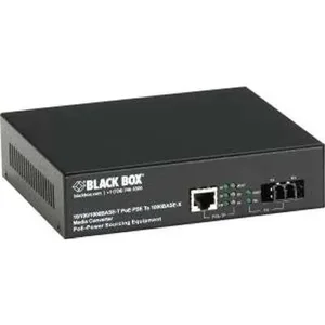 General Information A low-cost, economical solution for powering PoE devices over the same CATx link used for data communications. Powered device (PD) signature sending detects when a PoE device is connected. Protects against damage caused by overcurrent events and offers undercurrent detection. Link fault passthrough monitors both copper and fiber receive ports for loss of signal. Far-end fault detection prevents the loss of valuable data from it being sent over an invalid link. Supports 802.3x flow control on full-duplex ports and backpressure on 10BASE-T/100BASE-TX half-duplex ports. Jumbo frame support (2 KB, normal mode; 9 KB, cut-through mode). Copper port autonegotiates for network speed and features Auto MDI-X for easy cabling. LEDs indicate when it is feeding PoE power as well as when power is interrupted. RoHS compliant. Connect Gigabit-speed fiber optic to a 10-/100-/1000-Mbps copper UTP segment while also powering 802.3af devices at the end of the CAT5 run. This PoE PSE Gigabit Media Converter from Black Box enables you to transparently connect copper cabling to multimode fiber as an economical way to extend Ethernet communications well beyond the 100-meter (327-foot) CATx limit. Along with matching copper to interference-free fiber at Gigabit speeds, the converter doubles as power sourcing equipment (PSE) for Power over Ethernet (PoE) devices plugged in on the copper side. Using existing UTP cabling for both data communications and 48-VDC power simplifies a network application in terms of provisioning power and maintaining equipment. It's particularly ideal for locating equipment where electrical access is inconvenient or just too expensive to locate. Install PoE-compatible security cameras and wireless access points in areas without any nearby power outlets while reducing your overall power consumption, too. Plus, the PoE PSE Gigabit Media Converter has extensive power management features, including overcurrent protection, undercurrent detection, minimum load sensing, and PSE MDI power enable/disable. For reliable data communications, the media converter boasts link fault passthrough (LFP) capabilities, monitoring receive ports on both the fiber and copper sides for loss of signal. If signaling is lost on one media port, it automatically disables the transmit (TX) signal to the other media port. Additionally, a far-end fault (FEF) function enables the converter to cease sending link pulse to a link partner if signaling on the fiber receive (RX) port is lost. The link partner will also synchronously stop sending data. This way, you don't lose valuable data transmitted over an invalid link.Interfaces/PortsTotal Number of Ports: 2Network (RJ-45): YesDVI: NoUSB: NoManagement Port: NoNumber of PoE (RJ-45) Ports: 1Number of SC Ports: 1SC Port Type: DuplexMedia & PerformanceMedia Type Supported: Optical FiberMedia Type Supported: Twisted PairFiber Mode Supported: Multi-modeFiber Optic Wavelength: 850 nmMaximum Distance Supported: 1804.46 ftFiber Optic Cable Standard: 50/125 mNetwork & CommunicationEthernet Technology: Gigabit EthernetNetwork Technology: 10/100/1000Base-TXPhysical CharacteristicsHeight: 1.6"Width: 6.2"Depth: 5.2"Weight (Approximate): 1.32 lbMiscellaneousEnvironmentally Friendly: YesEnvironmental Certification: RoHSWarrantyLimited Warranty: 2 Year