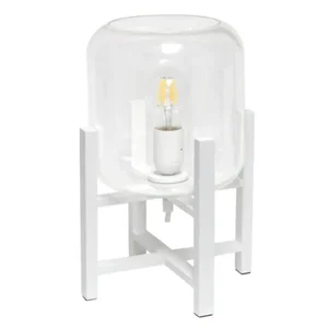 This elegant table lamp combines modern design with a touch of sophistication. Its white wood base provides a sturdy support, while the clear glass shade offers a minimalist aesthetic that fits seamlessly with any décor. Perfect for illuminating your workspace, bedroom, or living area, this lamp adds a refined touch to your home.