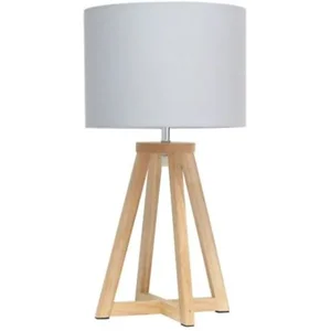 Illuminate your space with the Simple Designs Interlocked Triangular Natural Wood Table Lamp. This stylish lamp features a contemporary geometric design and a soft gray fabric shade, making it a perfect addition to any room in your home.