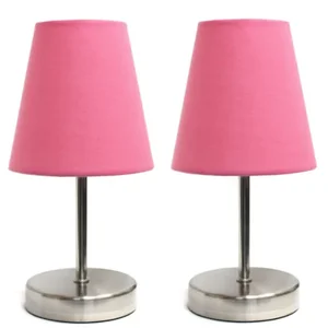 This stylish set of mini table lamps adds a touch of elegance to any space. With sand nickel metal bases and soft pink fabric shades, these lamps are perfect for enhancing the decor of your living room, bedroom, office, or dorm room.