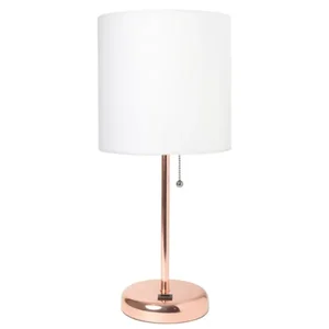 All The Rages Inc LT2044-RGD Rose Gold USB Stick Lamp with Fabric Shade - White