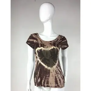 Jayli Imports M12SWtop:M12S-brn-S Viscose Heart Tie Dye T-Shirt in Brown (Pack of 1)