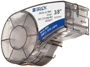 Brady M21-375-595-RD BMP21 PLUS SERIES INDOOR/OUTDOOR VINYL LABELS 0.375INX21FT WHT/RED