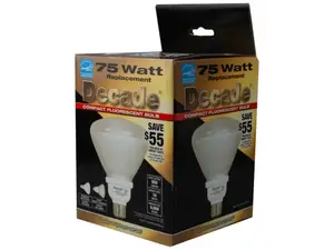 Save energy and reduce your electricity bill with the Energy-Efficient 75W Equivalent CFL Light Bulb. This compact fluorescent bulb uses only 18 Watts while providing a bright output of 950 Lumens. Designed for longevity, it delivers approximately 8,000 hours of light with reliable performance. Please note, this bulb is not dimmable. It comes conveniently packaged in a compact box for easy storage and handling.