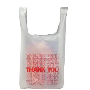 Our durable and environmentally-friendly "thank you" shopping bags are perfect for a variety of products. Measuring 8" x 4" x 16", these bags feature a suffocation warning and are designed for convenience stores, restaurants, and retail shops. With easy-to-hold handles, they are both functional and considerate to your customers’ needs.