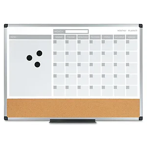 Bi-silque Visual Communication Products MB3507186 3-in-1 Dry Erase Calendar Planner Board with Aluminum Frame