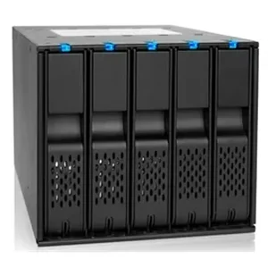 The ICY DOCK FlexCage MB975SP-B is designed to maximize storage efficiency, allowing for the installation of up to five 3.5" SATA hard drives within just three 5.25" bays. This innovative cage features a tray-less design for easy drive insertion and removal without the need for tools. With individual power buttons for each drive and a removable fan that promotes optimal cooling, the FlexCage is perfect for any high-performance system, including file servers and media centers.