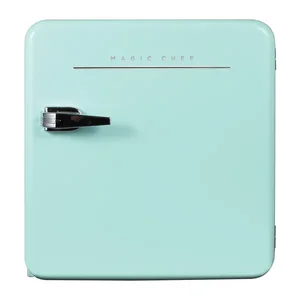 • Retro-style all-refrigerator provides nostalgic look in office, game room, or dorm;• Stylish chrome finish handle adds to retro look;• Interior LED light lets you easily see inside ;• Adjustable temperature control ensures ideal temperature;• Removable glass shelf accommodates variety of beverages;• Leveling legs help stabilize beverage cooler on uneven surfaces;• Dimensions: 17.5 in. W x 19.3 in. H x 18.6 in. D;• Green;
