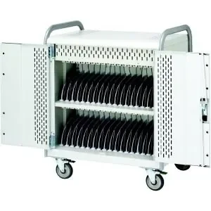 The 36-Tablet Charging Cart is designed for schools and offices to securely store and charge up to 36 tablets. It features durable construction, ensuring longevity, while easy access doors allow for convenient tablet retrieval.