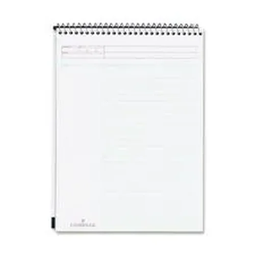Top-wirebound book/pad contains 70 sheets of heavyweight 20 lb. paper. Each sheet has a burgundy-ruled heading area, unruled column and green ruled area for notes. Lines in the green-ruled area are numbered 1 through 28 on the front of each sheet, and numbered 29 through 50 on the back. Each sheet is microperforated for easy removal. Pad offers a stiff back construction for writing support.