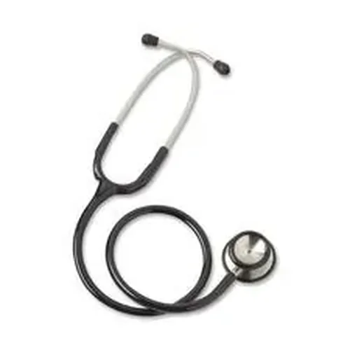 Stethoscope is designed for adults and offers unsurpassed quality. Stethoscope is handcrafted from high-tensile strength, German stainless steel. Color-coordinated nonchill ring provides excellent patient comfort. Tubing is 22" (56 cm) for easy use. Stethoscope comes in a foam-lined box with one extra set of ear tips.