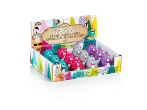 NPW Woodland Bear Lip Balm offers an enjoyable way to keep your lips moisturized. Perfect for home, office use, or as a delightful gift for friends, these lip balms are packaged in unique bear-shaped containers that come in four vibrant colors. Each bear features a different flavor: Bubble Gum, Cotton Candy, Coconut, and Forest Berries. All lip balms are shrink-wrapped and presented conveniently in a countertop display.
