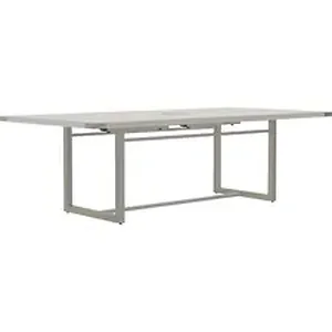Sitting-height Conference Table is part of Safco Mirella Casegoods that let you revel in the best of both worlds with a contemporary design with finishes and Brushed Silver accents that provide a residential look. Balance functional and aesthetic needs with innovative design elements that define any space. It's like working from home while still at the office. This 8' Sitting-height Conference Table coordinates with Mirella Desking and Reception for a consistent professional appearance. It comes complete with sturdy metal legs, adjustable leveling glides and a 1-5/8" thick rectangular worksurface with two cutouts and grommet covers. Durable, White Ash laminate on particleboard is complemented with brushed silver accents and finishes.