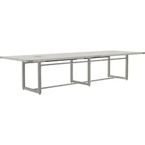 Mirella Conference Table balances functional and aesthetic needs with innovative design elements that define any space. Mirella Casegoods let you revel in the best of both worlds with a contemporary design for a residential look at the office. Providing a durable worksurface, the 1-5/8" thick tabletop is made of particleboard and covered in smooth, White Ash laminate. Two cutouts and grommet covers allow easy cord management. Sitting-height conference table also includes a sturdy metal base, adjustable leveling glides for stability and brushed silver accents. Use this 12' table with Mirella Desking and Reception for a consistent, professional workplace.