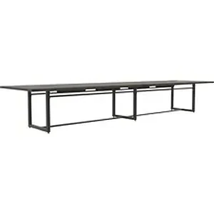Mirella Conference Table balances functional and aesthetic needs with innovative design elements that define any space. Mirella Casegoods let you revel in the best of both worlds with a contemporary design for a residential look at the office. Providing a durable worksurface, the 1-5/8" thick tabletop is made of particleboard and covered in smooth, Southern Tobacco laminate. Two cutouts and grommet covers allow easy cord management. Sitting-height conference table also includes a sturdy metal base, adjustable leveling glides for stability and black, powder-coated accents. Use this 16' table with Mirella Desking and Reception for a consistent, professional workplace.