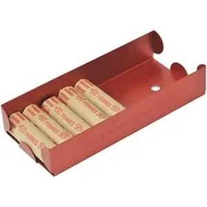 Coin tray is designed to hold specific dollar amounts of wrapped coins. Color designates denomination of coin for error-proof handling. Denomination and capacity are also clearly etched on sides of tray for easy, quick identification. Tray is made of aluminum.