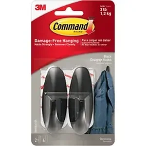 Forget about nails, screws and tacks. Command Designer Hooks offer a fast, easy way to hang and hold a surprising amount of weight. Command Adhesive sticks to many surfaces, including paint, wood, tile and more, yet comes off leaving no holes, marks, sticky residue or stains. Rehanging is as easy as applying a Command Refill Strip so you can take down, move and reuse them again and again. Bilingual packaging is printed in English and Spanish.
