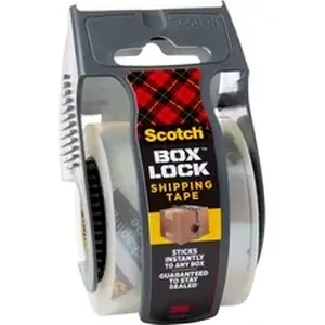 Scotch Box Lock Packaging Tape sticks instantly to any box. Extreme grip ensures boxes stay securely sealed, even during rough handling. Advanced adhesive creates a secure seal over box edges better than other leading premium packaging tapes and sticks better on cardboard too. It is designed to be thicker than many competitive tapes, which reduces splitting and tearing and makes it easier to find the start of the roll. This tape can be used on any type of box, including harder-to-stick to 100 percent recycled boxes. Tape roll comes with a dispenser.