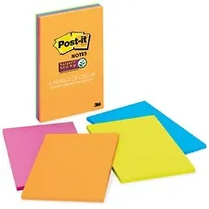 Post-it Super Sticky Notes feature a unique adhesive so your notes will stick securely to more surfaces. Now you can stick your notes where they'll really get noticed - like monitors, doors and walls. With lines to keep your notes straight, the 4" x 6" note is a perfect size for capturing important details or making lists. Super Sticky Notes hold longer and stronger than original notes yet remove cleanly. The Rio de Janeiro Color Collection is expressive and dramatic with colors celebrating this Brazilian metropolis. Super Sticky Post-it Notes are recyclable, and the paper in Post-it Notes is sourced from certified, renewable and responsibly managed forests.