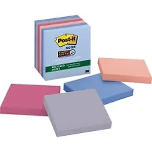 Post-it Recycled Super Sticky Notes help support a better future by using recycled paper and feature a unique adhesive so your notes will stick securely to more surfaces. Now you can stick your notes where they'll really get noticed - like monitors, doors and walls. The 3" x 3" size is perfect for reminders or a short to-do list. Super Sticky Notes hold longer and stronger than original notes yet remove cleanly. The Bali Collection contains thoughtful colors reflecting a journey of discovery, nature and self. Super Sticky Post-it Notes are recyclable, and the paper in Post-it Notes is sourced from certified, renewable and responsibly managed forests.