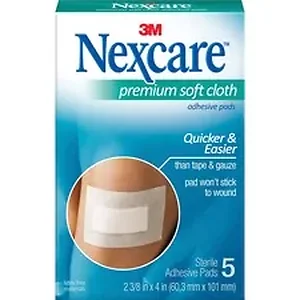 Quicker and easier than tape and gauze, this all-in-one dressing features a water-resistant adhesive backing that holds a unique, nonstick absorbent pad securely in place, but won't stick to the wound. Highly breathable gauze pad is hypoallergenic and latex-free. Each Nexcare Soft Cloth Premium Adhesive Gauze Pad is sterile and individually packed.