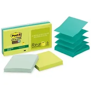 Post-it Super Sticky Pop-up Note refills stick practically anywhere with revolutionary adhesive technology. Put your notes where they'll get noticed - like monitors, doors and walls. Pop-up feature offers the convenience of grabbing just one note, with just one hand. The accordion-style notes pop up one at a time from a specially designed pop-up dispenser (sold separately), keeping the notes at your fingertips. The paper in Post-it Notes is sourced from certified, renewable and responsibly managed forests. Each pad contains 90 sheets.
