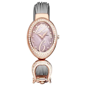Charriol MOPD1570015 Women's 'Marie Olga' Mother of Pearl Dial Diamond Rose-Tone Swiss Quartz Watch Charriol MOPD1570015 Women's 'Marie Olga' Mother of Pearl Dial Diamond Rose-Tone Swiss Quartz Watch features a stainless steel 20mm case, a mother of pearl dial, and a sapphire crystal. The 8mm stainless steel multi-strand band is fitted with a jewelry clasp. This wrist watch is powered by Swiss Quartz movement. This watch has a water resistance of up to 100 feet/30 meters, suitable for short periods of recreational swimming. Features: Brand: Charriol Model number: MOPD1570015 Case Shape: Oval Dial window material type: Sapphire Display Type: Analog Clasp: Jewelry Clasp Case Material: Stainless steel Case diameter: 20 millimeters Case Thickness: 7 millimeters Band Material: Stainless Steel Multi-Strand Band length: 6 inches Band width: 8 millimeters Band Color: Silver-tone Dial Color: Mother of Pearl Bezel Material: Stainless Steel Bezel Function: Fixed Movement: Swiss Quartz Water-resistant depth: 30 meters UPC: Charriol MOPD1570015 MSRP: $ 5,025