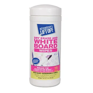 Dry-erase board wipes remove fresh and old marks, dry-erase shadowing, fountain pens and permanent markers from all dry-erase surfaces. The water-based wipes also work on desktops, countertops, office equipment and other hard surfaces. Wipes are conveniently dispensed one at a time from a plastic container.