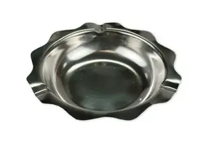 The Elegant Stainless Steel Scalloped Ashtray is designed for both indoors and outdoors. Ideal for your patio table, it effectively collects cigarette butts while enhancing your outdoor decor. The low profile and unique scalloped shape allow it to fit seamlessly on various surfaces. Featuring indents along the edge, this ashtray promotes sanitary disposal of ash and remains stylish.
